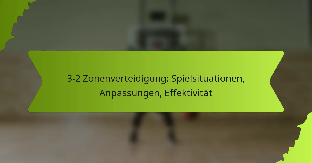 Die 3-2-Zonenverteidigung ist eine Basketballstrategie, bei der drei Spieler den Perimeter bewachen und zwei den Bereich unter dem Korb schützen, wodurch das Außenschießen effektiv eingeschränkt und gleichzeitig gegen Punktgewinne im Inneren verteidigt wird. Diese Formation erweist sich besonders in Drucksituationen während des Spiels als effektiv, insbesondere gegen starke offensive Teams, da sie den Schutz des Korbes mit Herausforderungen am Perimeter ausbalanciert. Trainer können ihre Effektivität steigern, indem sie in Echtzeit Anpassungen an der Spielerpositionierung und den Taktiken vornehmen, um sicherzustellen, dass die Verteidigung auf die sich entwickelnden Dynamiken des Spiels reagiert.
